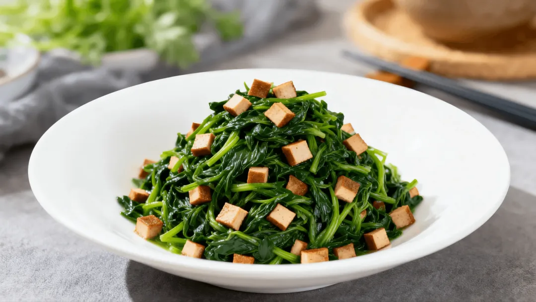 七头一脑”的“头”指的是嫩茎叶等植物的新生部位,“七头”分别指的是枸杞头、马兰头、荠菜头、香椿头、苜蓿头、豌豆头、小蒜头;“一脑”指的是菊花脑。