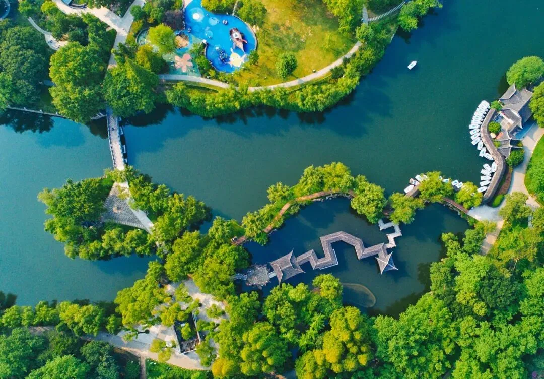 古城区最大的开放公园之一,绿地率高达75%,绿树成荫、河湖交错,保留着古树名木与苏式仿古建筑。栈桥连通环古城步道,滨水草坪、旱溪花境,没有喧嚣。春天的东园更是美不胜收。