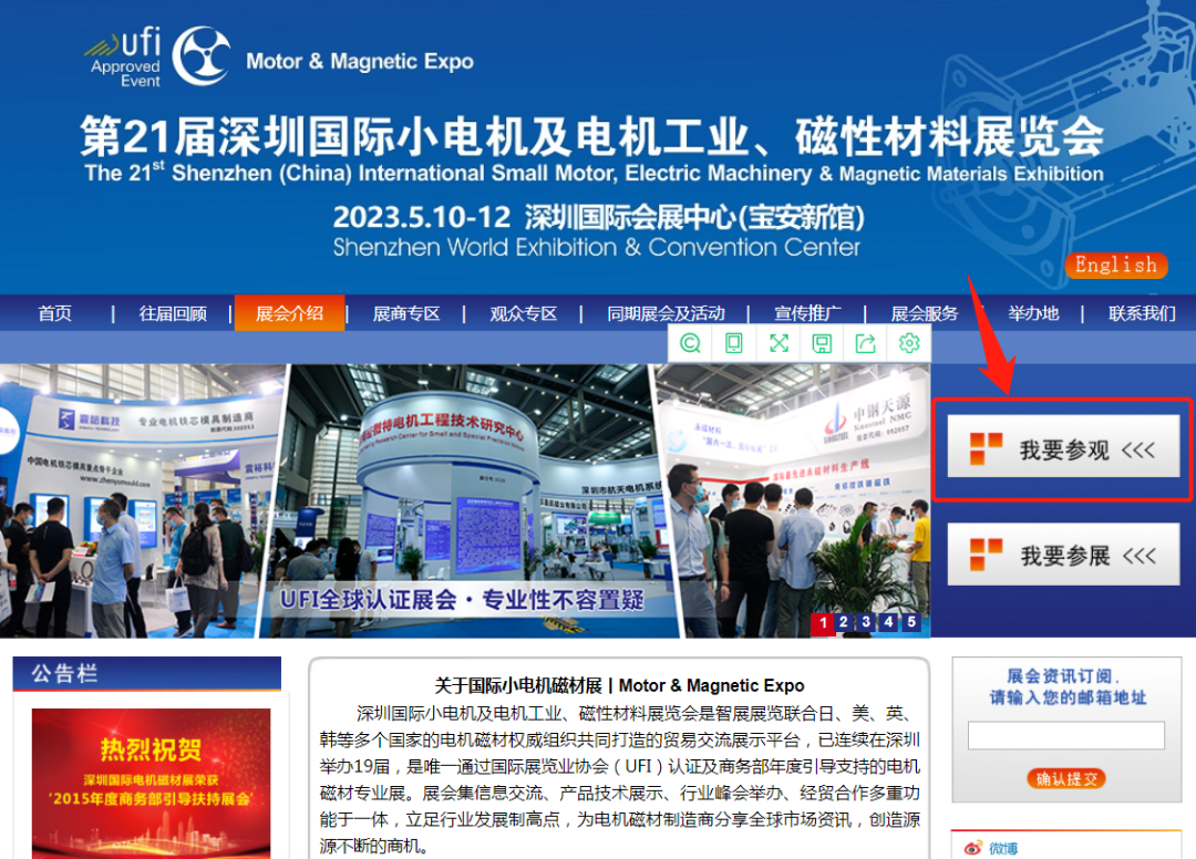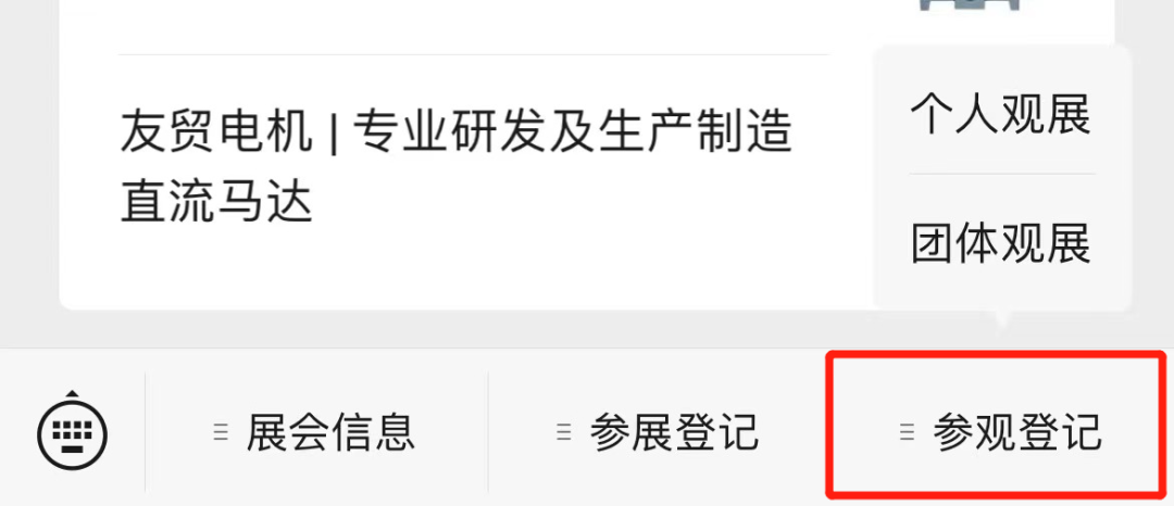 点击深圳国际小电机磁材展微信公众号菜单栏的“参观登记”
