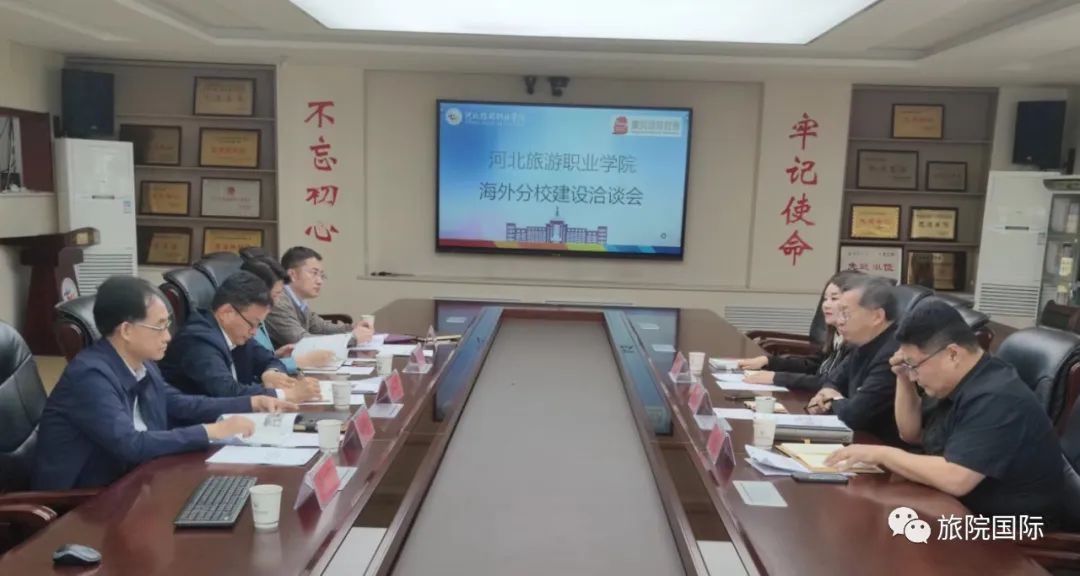 随后,李劲松就唐风公司的历史、业务范围、海外子公司建设等情况进行了介绍,重点介绍了在海外分校建设方面所做的相关工作、取得的成绩与经验。双方就河北旅游职业学院与“一带一路”沿线的个别国家进行国际交流合作事宜进行了深入细致的交流,主要包括:输出“岗课赛证”标准、师资交流、学生留学、海外实习、服务京津冀尤其是承德企业在海外的国际业务等。