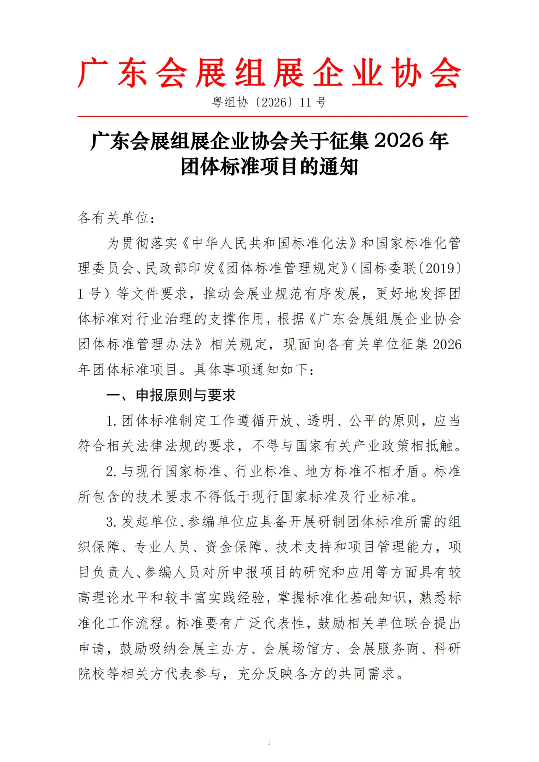 广东会展组展企业协会关于征集2026年团体标准项目的通知