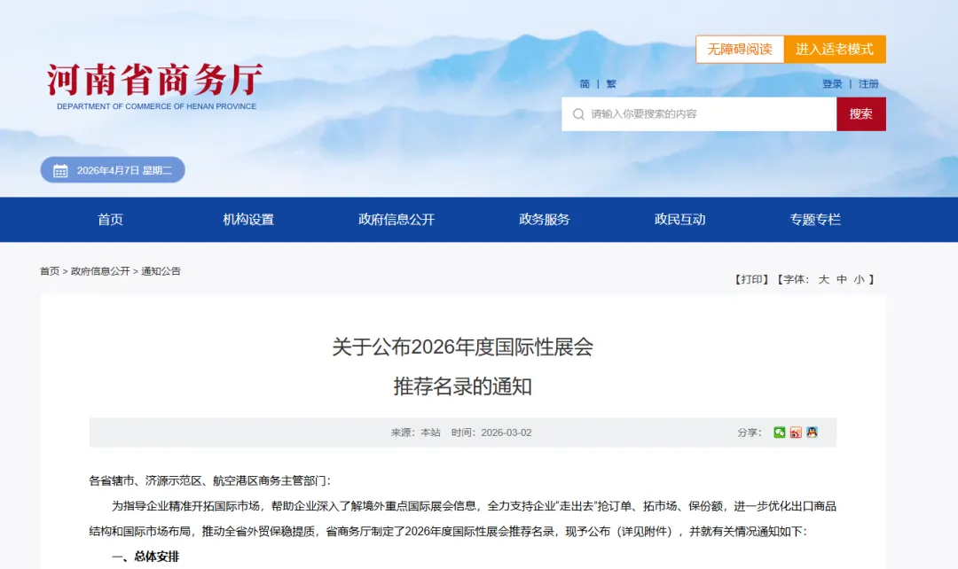 河南省(2026 年商务厅补贴项目)