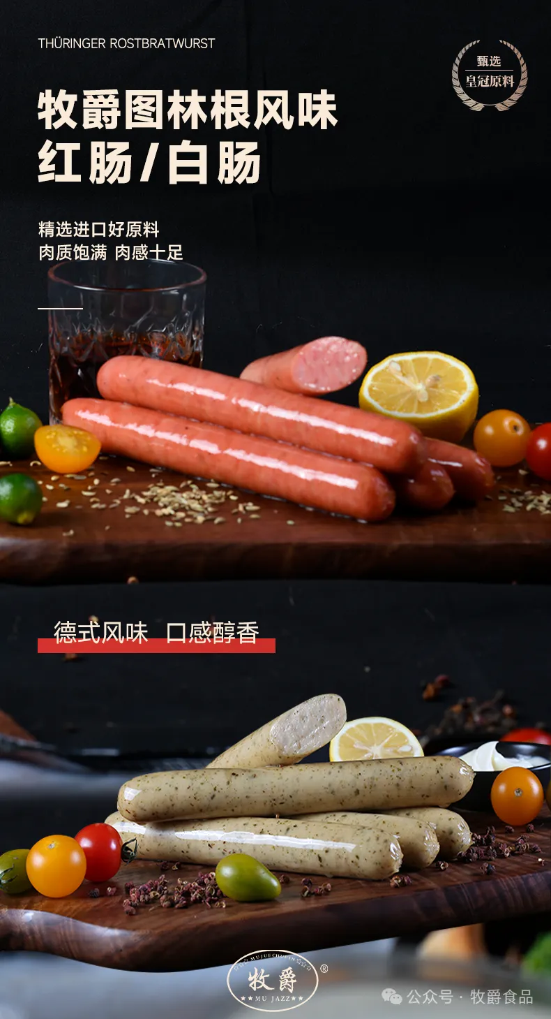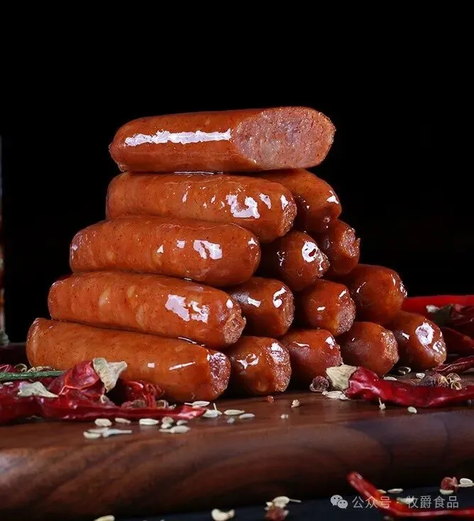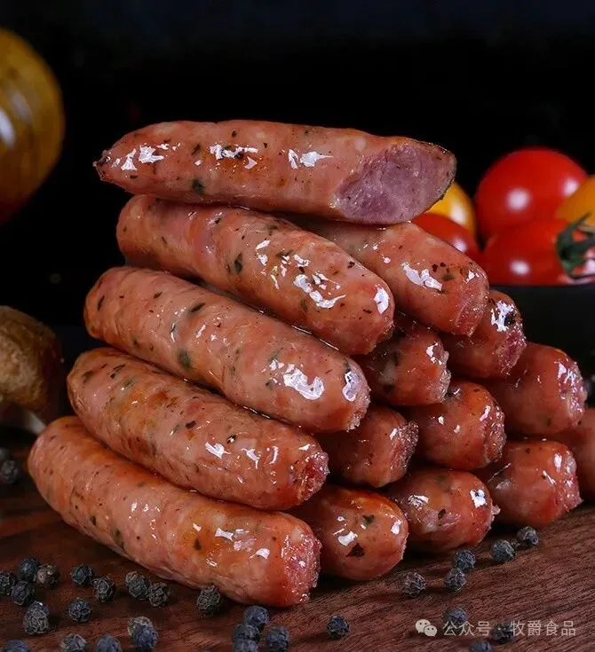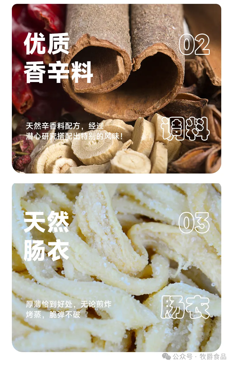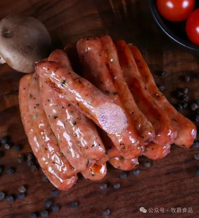 外皮脆爽:天然肠衣经烟熏工艺,赋予独特脆韧口感。