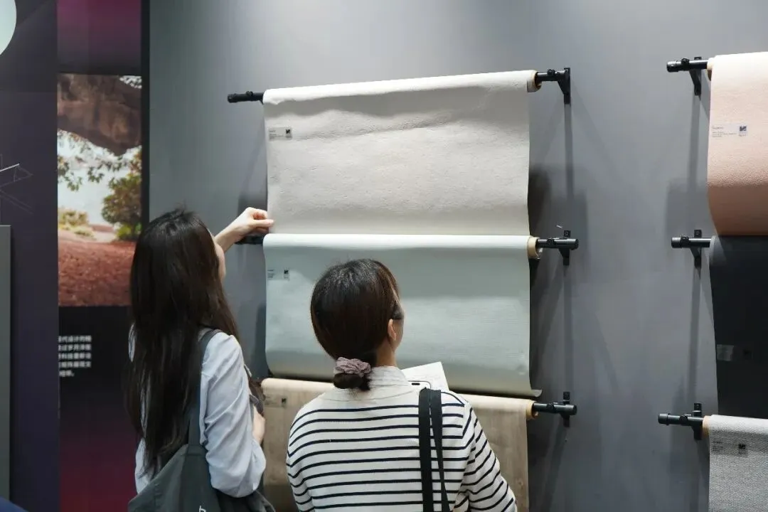 此次展出的膜材料矩阵,依旧覆盖多元需求:色彩趋势系列紧扣《拥抱新视角——色彩之旅26/27》报告,分为“心灵庇护所”“记忆的根源”“团结的力量”三大维度,从低饱和柔色到大地色系,再到高饱和亮色,并搭配哑光微肌理、原生纹理等丰富质感。