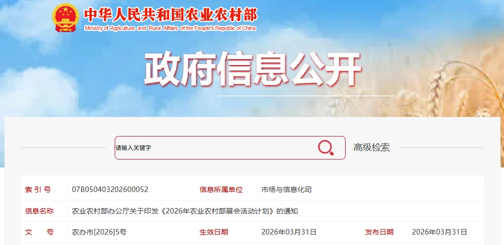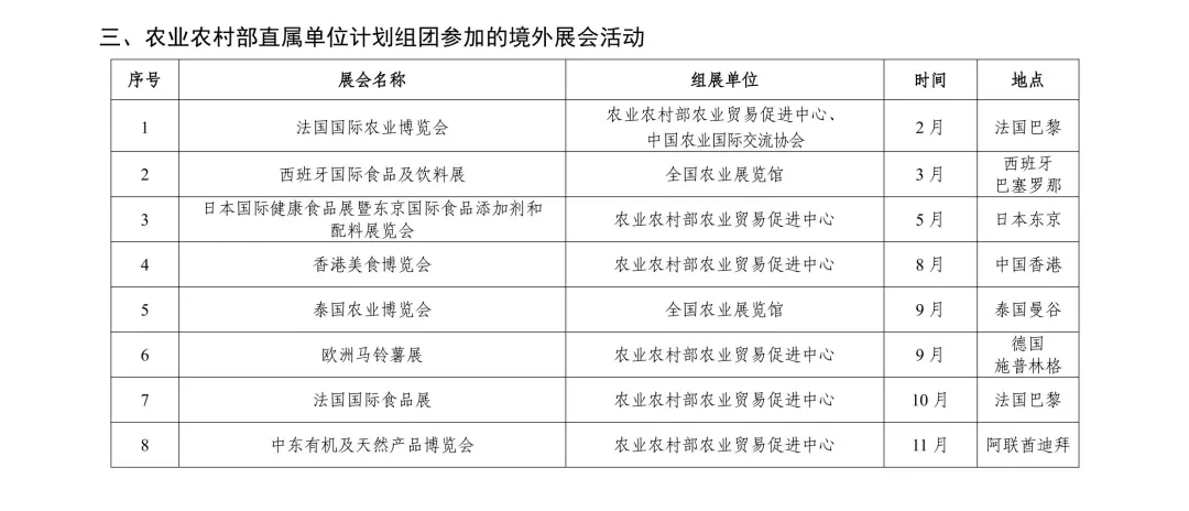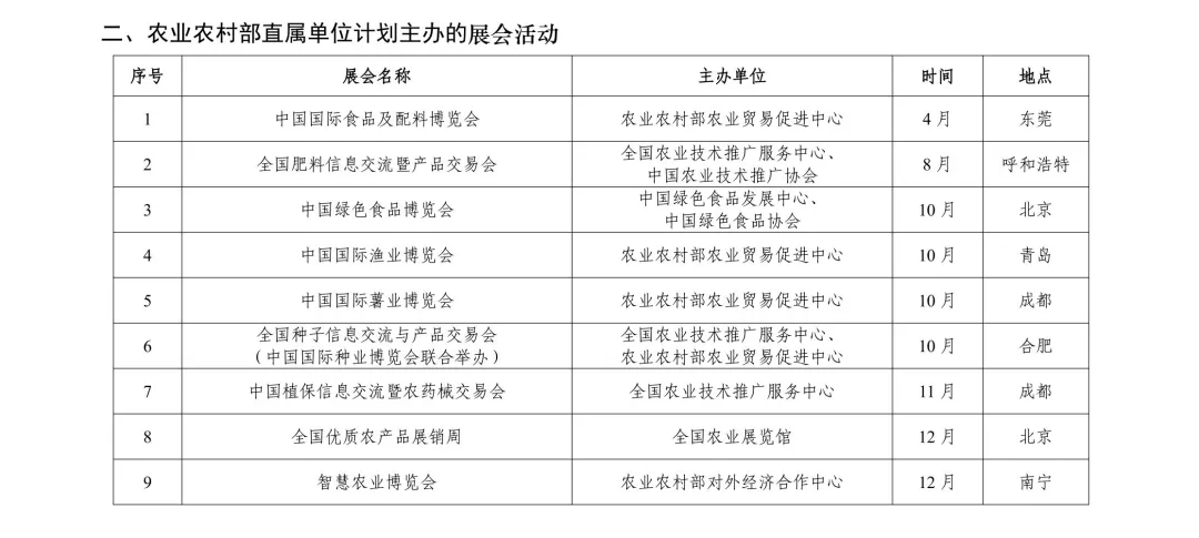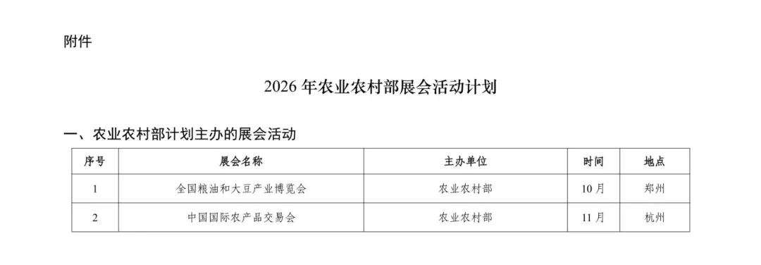 《2026年农业农村部展会活动计划》的通知