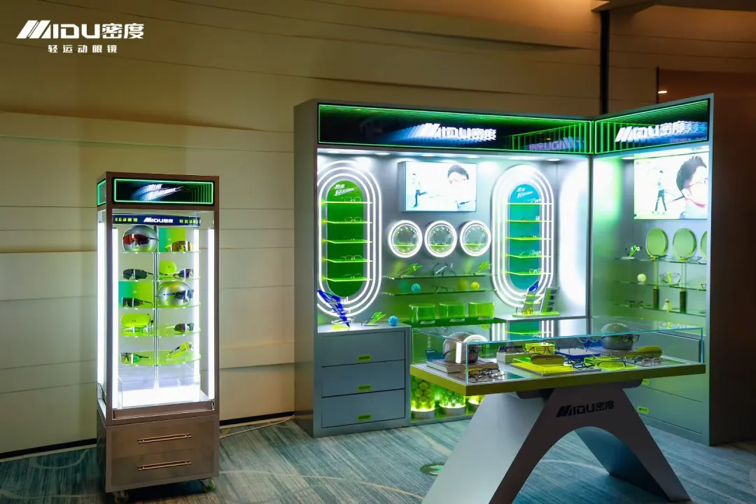 本次发布会,密度带来了全系列轻运动眼镜产品。从专业运动款到日常通勤款,从防紫外线到高清视觉,每一款都兼顾了运动性能与时尚设计。现场的产品展示区,以科技感十足的绿银配色,全方位呈现了密度眼镜的工艺细节与佩戴场景,让嘉宾直观感受“轻运动,轻生活”的产品理念。