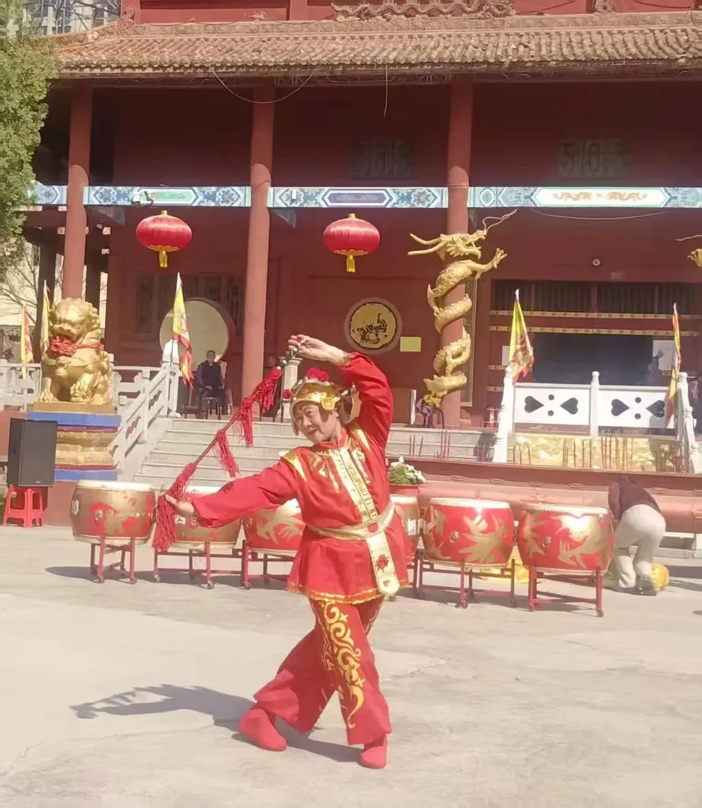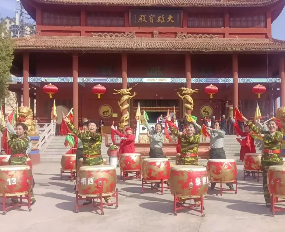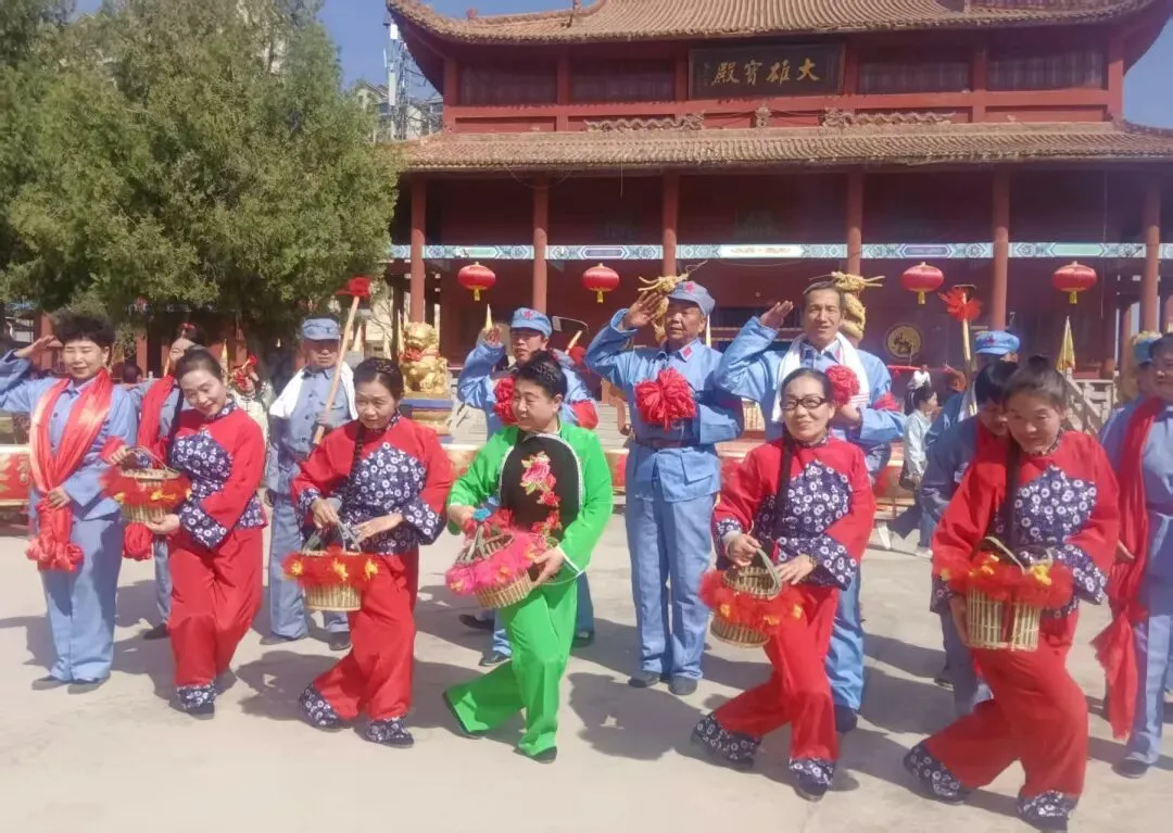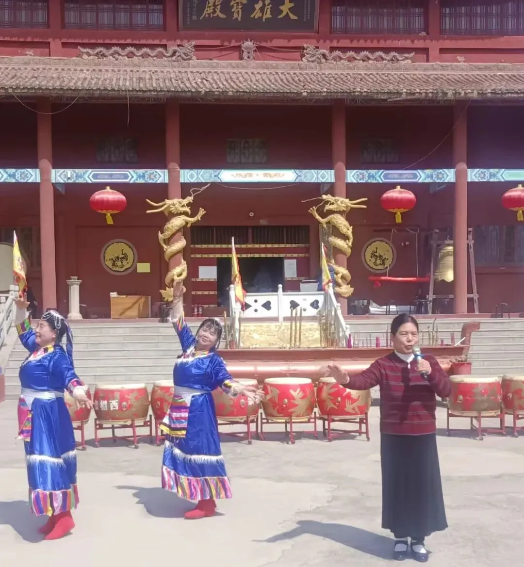 古韵声声传乡情,新风阵阵润人心。 4 月 6 日,正值传统古庙会之际,为进一步弘扬中华优秀传统文化,丰富社区群众的精神文化生活,临猗县新时代实践学雷锋志愿者演出团队携手崇相西江姐鼓舞队、临猗县仙海岛演出队、王村文艺宣传队,共同走进临猗县城仁寿寺,开展了一场热闹非凡、满载诚意的 “古庙会新风” 义务演出活动。整场演出节目精彩纷呈,从红色歌舞到经典戏曲,从非遗展示到全民共读,既展现了蓬勃向上的时代风貌,也送上了最真挚的节日祝福。