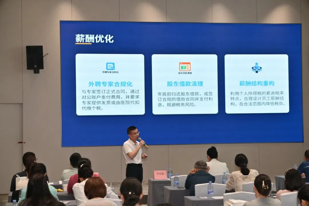 针对民营口腔医院经营中的税务痛点,陆志潘讲师重点剖析了收入端、成本端、人工与个税、股东与资金、业务模式、市场推广六大高频税务风险,精准点出行业内普遍存在的税务漏洞。同时,围绕收入合规化、成本规范化、薪酬优化、税收优惠利用四大核心方向,给出了切实可行的合规应对与税务筹划策略,尤其针对增值税新规下的技耗分离、免税优惠享受条件等关键问题进行详细解读,指导企业如何在政策框架内合法合规降低税务成本。