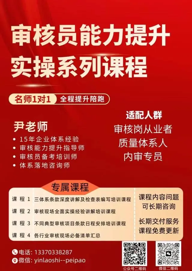 如果你想突破以上卡点,快速提升自身的审核能力,可以关注我们现场审核实操课程:
