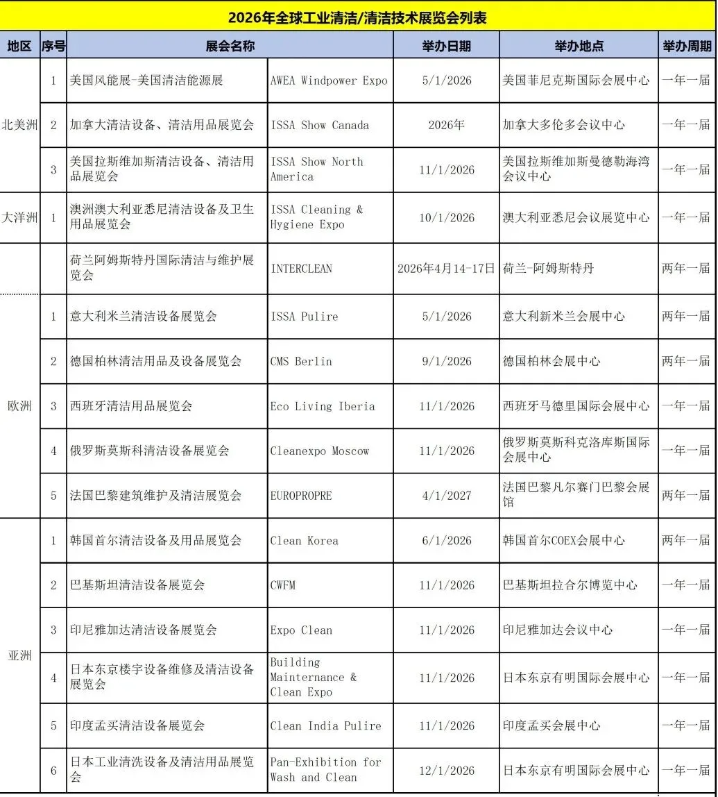 2026年全球工业清洁清洁技术展览会列表