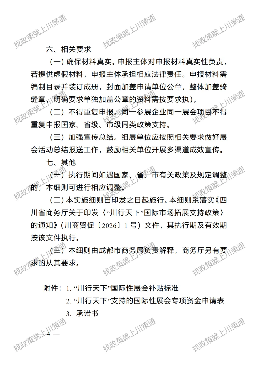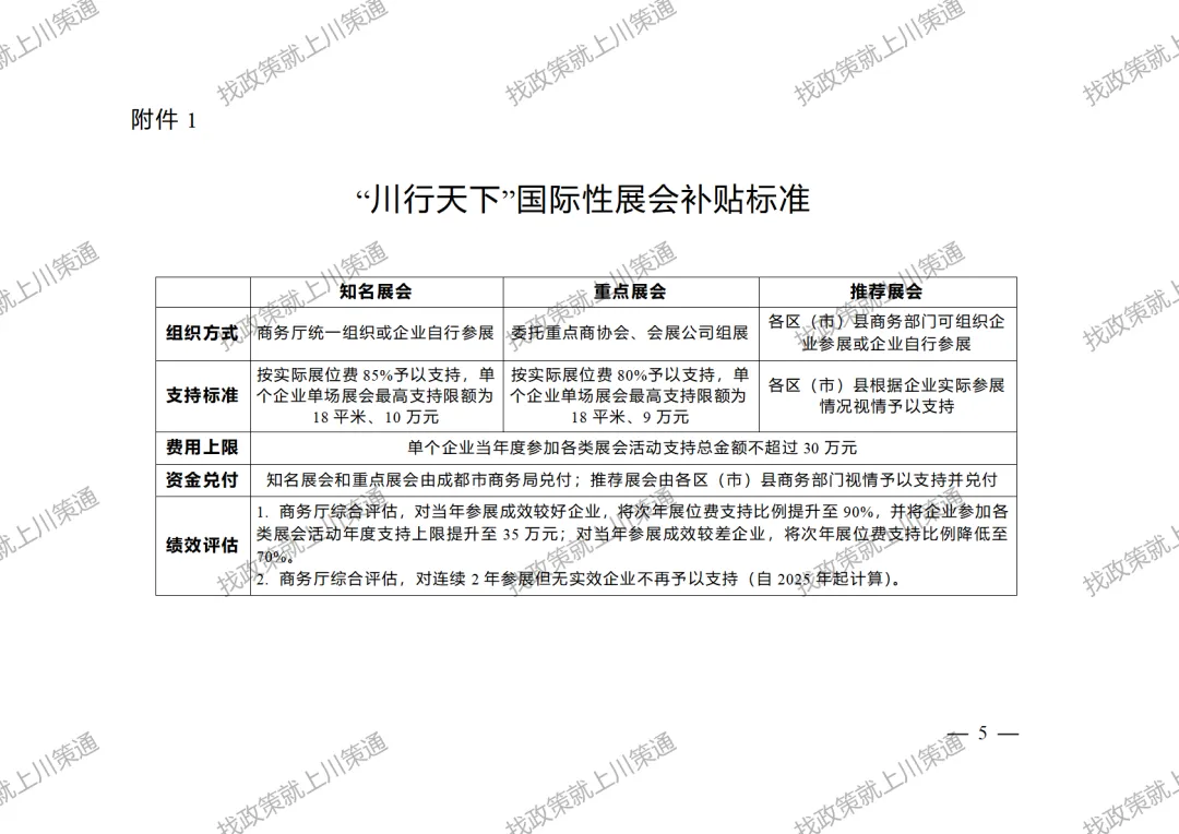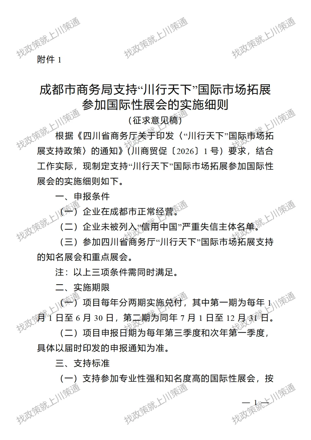 附件:1. 成都市商务局支持“川行天下”国际市场拓展参加国际性展会的实施细则(征求意见稿)