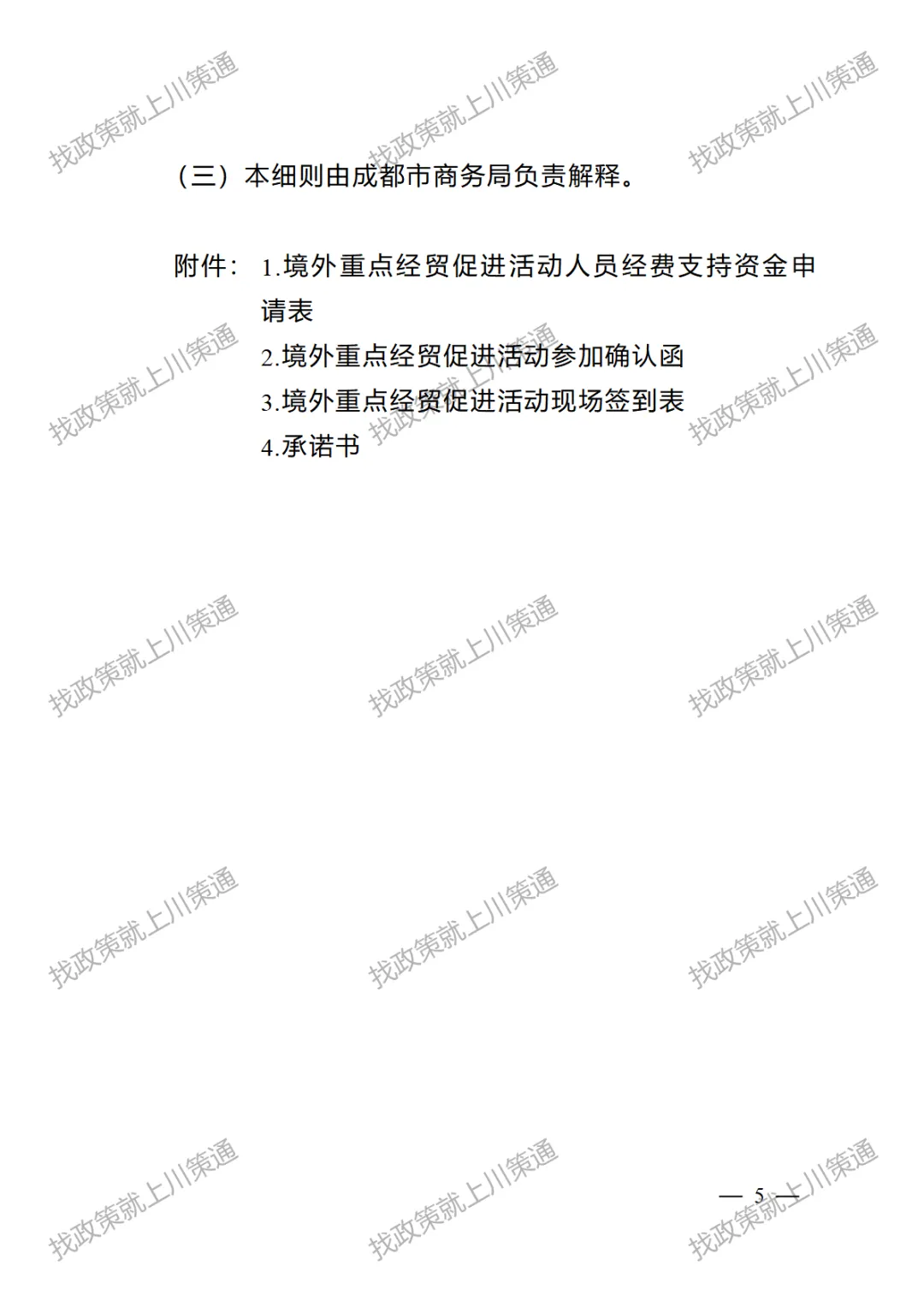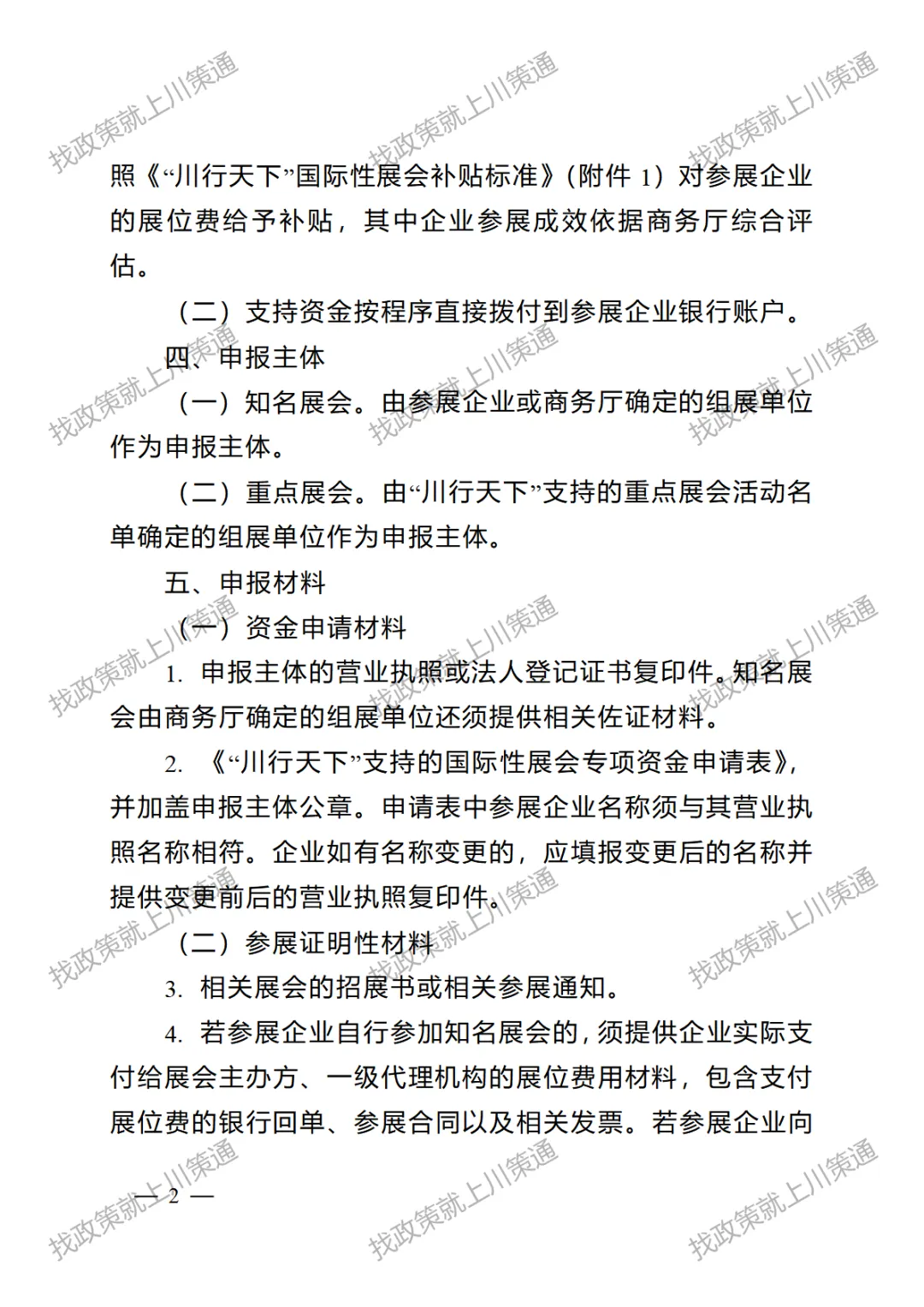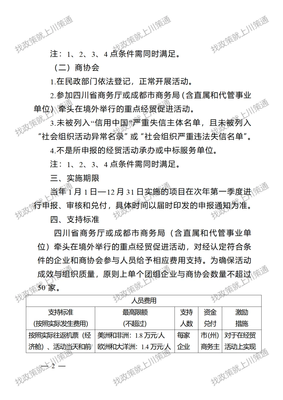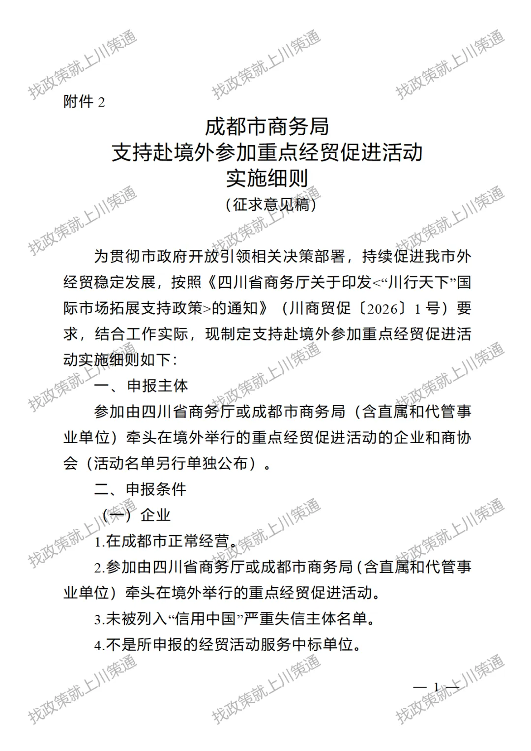 2. 成都市商务局支持赴境外参加重点经贸促进活动实施细则(征求意见稿)