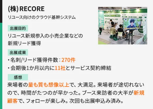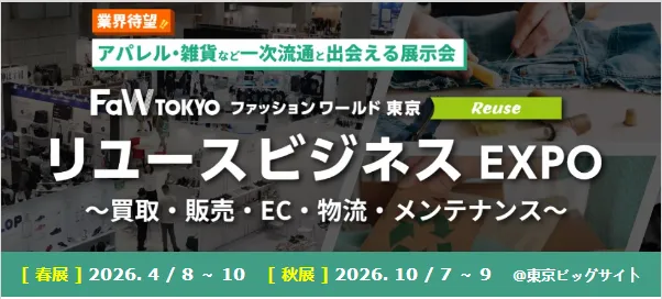 什么是“再利用商务EXPO”?着眼于在时尚业界急速成长的再利用市场,采购销售·二手品批发·维护·物流·EC支援服务等展出的展览会。在本次展览会上,想加入再利用的一次流通的服装·杂货企业,不宣传贵公司的服务吗?