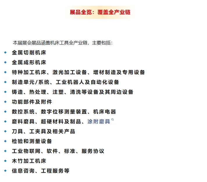 想提前锁定心仪展品?完整展品名录已上线,涵盖金属切削机床、成形机床、激光加工设备、工业机器人、数控系统、功能部件、刀具量仪等全品类展品分类信息。