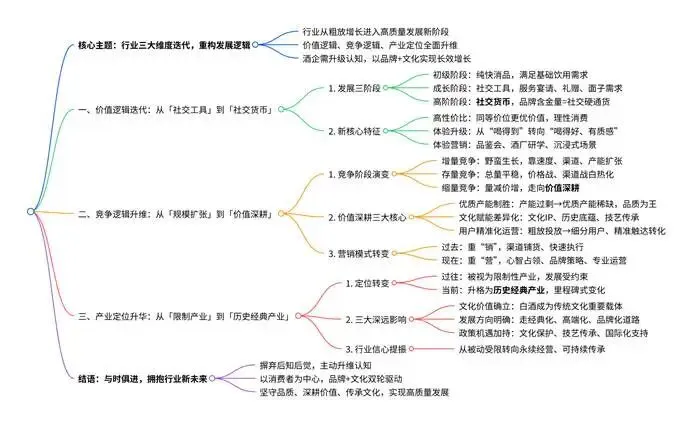 如果说价值逻辑的迭代是行业升级的“内核变化”,那么竞争逻辑的升纬,则是行业更高版本的“外在体现”。传统白酒行业的竞争,已从过去的“规模扩张式”增量竞争,历经存量竞争,最终进入当前“价值深耕式”的缩量竞争阶段,竞争逻辑发生了根本性扭转。过去,白酒行业的增长主要依赖“规模扩张”,这是典型的行业扩张期增长模式,核心逻辑是“增量竞争”——市场需求持续增长,酒企的核心目标就是通过各种方式抢占更多市场份额,实现规模突破。具体来看,酒企通过密集铺设渠道,实现从一线城市到乡镇市场的全面覆盖;不断开发新的产品条码,满足不同渠道、不同价位的需求;加大广告媒介投放,通过电视、报纸、户外广告等方式提升品牌曝光度;持续扩大产能,保障产品供应,最终实现“量的快速增长”。这一阶段,行业整体处于“野蛮生长”状态,竞争的核心是“速度”和“规模”,只要敢于投入、快速布局,就能获得不错的发展。但随着市场需求逐渐饱和,行业增长放缓,竞争进入“存量竞争”阶段——市场不再有明显的量增,整体总量趋于稳定,甚至出现小幅衰减,酒企之间的竞争从“抢占新市场”转向“争夺现有市场份额”,价格战、渠道战成为主流,很多中小酒企陷入“增收不增利”的困境。而近六年来,白酒行业彻底进入“缩量竞争”阶段,核心特征是“量减价增”——整体市场消费量持续下滑,但中高端、高端产品的价格稳步提升,行业整体向“高质量、高价值”方向发展。此时,竞争逻辑彻底从“存量博弈”升纬到“价值深耕”,不再是简单的规模比拼,而是核心竞争力的全面较量,主要体现在三个方面。其一,以品质为核心,实现“优质产能制胜”。随着消费者健康意识觉醒和消费理性提升,“拼喝酒”的时代早已过去,“喝好酒”成为主流需求。过去行业产能过剩,很多酒企追求“量的扩张”而忽视“质的提升”;如今,市场从“产能过剩”转向“优质产能短缺”,消费者对酒体品质、酿造工艺、原料选材的要求越来越高,只有坚守品质、打造优质产能的酒企,才能在竞争中站稳脚跟。其二,以文化为赋能,打造差异化竞争优势。当前,白酒行业的竞争已不再局限于产品、条码、价格的比拼,更多是品牌、文化以及对应用户和场景的竞争。过去,酒企靠大量投放广告、抢占货架赢得市场;现在和未来,竞争的核心是“文化战”——通过挖掘品牌历史底蕴、传承传统酿造技艺、打造特色文化IP、设计专属消费场景,为用户创造“超凡”的消费体验,进而增强用户粘性,实现品牌差异化突围。例如,河南仰韶挖掘仰韶文化,打造彩陶坊系列,形成独特的文化标签;江西李渡深耕元代窖池文化,以“李渡酒”为核心,构建差异化竞争优势,均实现了逆势增长。其三,以用户为中心,推进精准化运营。过去,很多酒企要么没有明确的用户概念,要么采用“泛用户”的粗放式运营,盲目投入市场资源,缺乏针对性;如今,随着消费需求的多元化和个性化,酒企开始从“粗放式投入”转向“精准化运营”,聚焦细分用户群体,提供个性化服务,构建闭环渠道管理,重点打造经营质量和品牌深度。通过精准定位目标用户、分析用户需求、优化服务体验,实现“精准触达、精准服务、精准转化”,提升用户忠诚度和复购率。总的来看,从“规模扩张”到“价值深耕”的升纬,是白酒行业竞争逻辑的根本性转变,也是对酒企整体组织能力、专业水平的全面考验。过去的营销重在“销售和执行”,只要做好渠道铺设、产品交付,就能实现增长;而当前及未来的营销,必须重在“营和策略落地”,更加侧重于“心智占领”,要求酒企具备精准的市场判断、系统的品牌规划、专业的运营能力和高效的执行团队。三、产业定位升华:从“限制产业”到“历史经典产业”,开启发展新篇