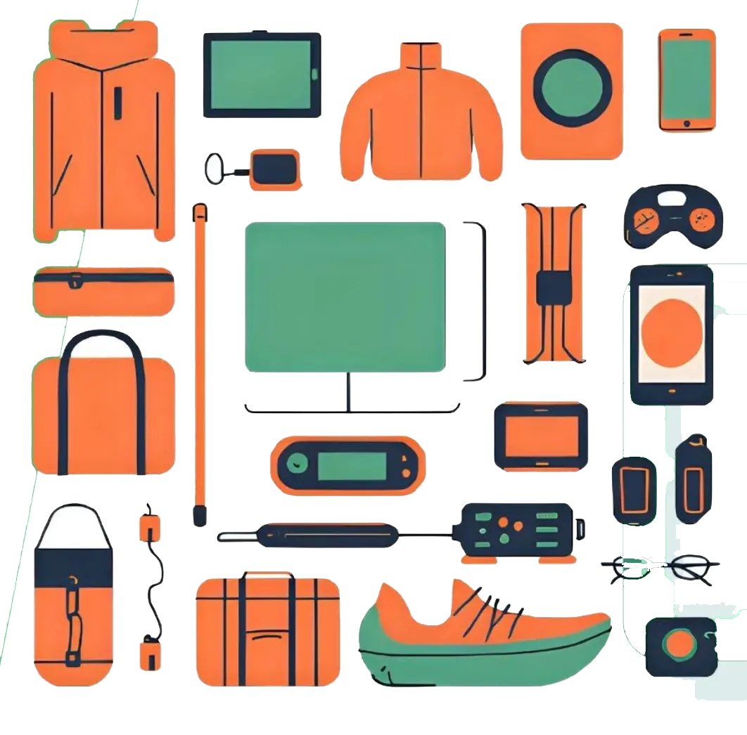户外服装、鞋帽、防护用品、包装与收纳、其他个性化配件等
