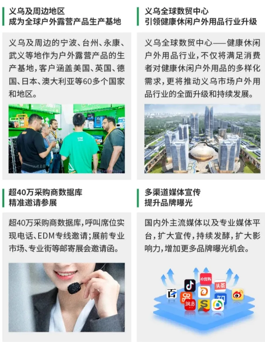 2026 义乌国际户外・庭院用品博览会,诚邀广大客商与行业同仁共赴盛会。提前完成预登记,即可免现场排队、轻松入场,高效对接优质供应商,一站式解锁户外新风尚,抢占行业先机,共赢全球商机!