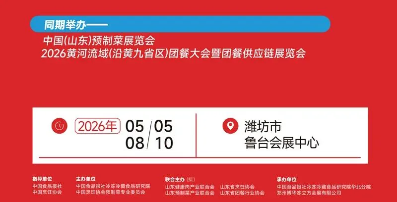 2026 DLF中国冷冻冷藏食品博览会(山东冻博会)暨第十四届中国火锅料节暨烧烤食材展览会,定于5月8-10日在潍坊鲁台国际会展中心举办。