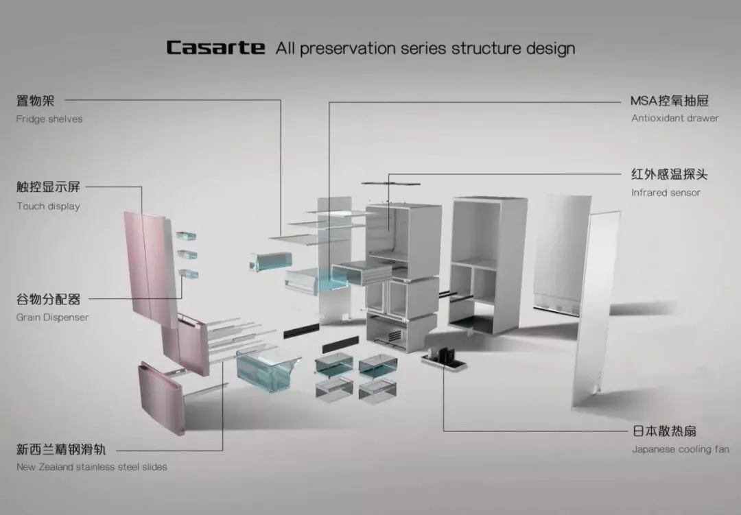 卡萨帝F+自由嵌入式冰箱中英文版解剖图