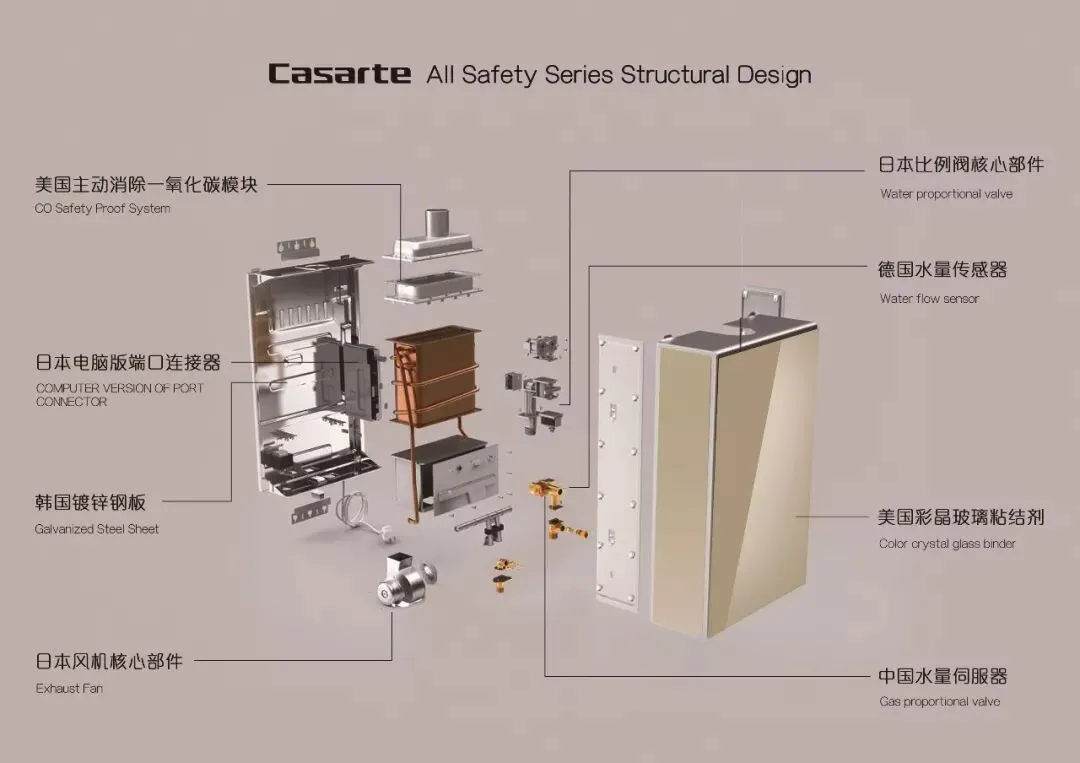 卡萨帝燃气热水器CH系列中英文版解剖图