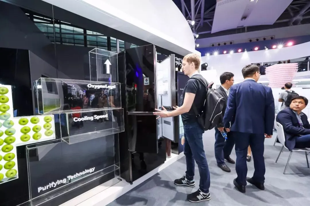 “将冰箱内的温度波动控制在±0.05℃的奥秘,就藏在这个小小的气悬浮无油压缩机内”,工作人员边介绍边在一旁的解剖图上指出关键所在,来自北美的一位外商凑近观看,点头称赞。