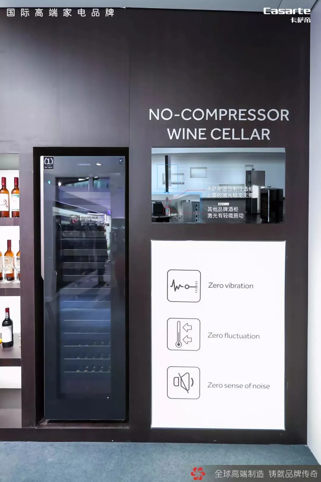 大容量固态制冷酒柜在无声的运行,固态制冷科技赋予了它0振动、0波动、0噪感。