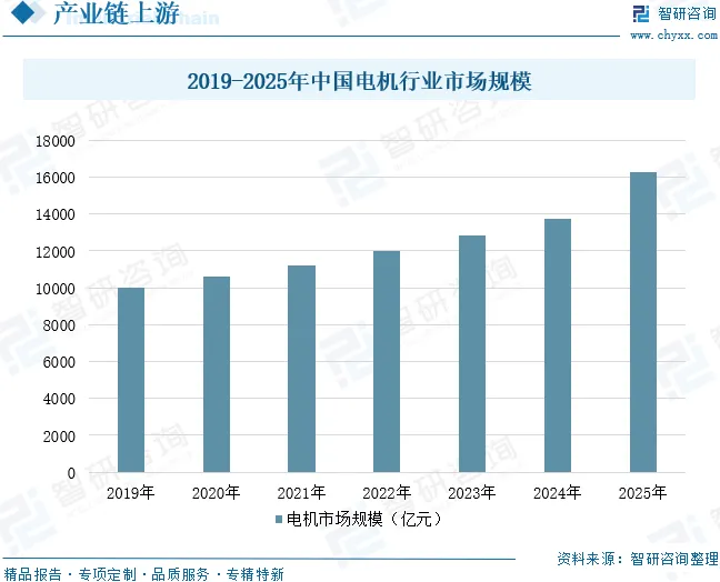 电机是电动缸的核心部件之一,负责提供动力。电机通常采用直流无刷电机或步进电机,其转动方向和速度可以通过控制电路调节。作为现代工业的核心组成部分,近年来在国家产业政策支持与市场需求持续增长的推动下,我国电机行业市场规模稳步扩张。据统计,2025年中国电机行业市场规模约为16264亿元,同比增长18.38%。未来,电机技术将向高效化、集成化、智能化方向演进,从而为电动缸提供更为可靠、精准和节能的动力支撑。