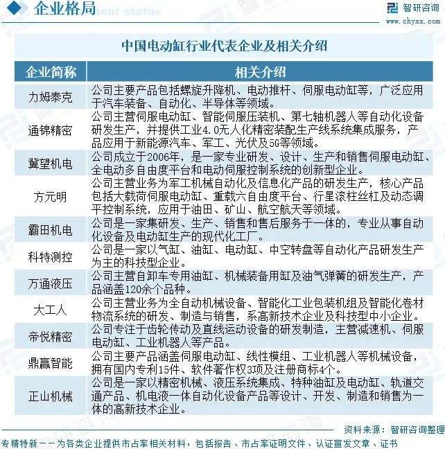 电动缸行业企业格局和重点企业分析