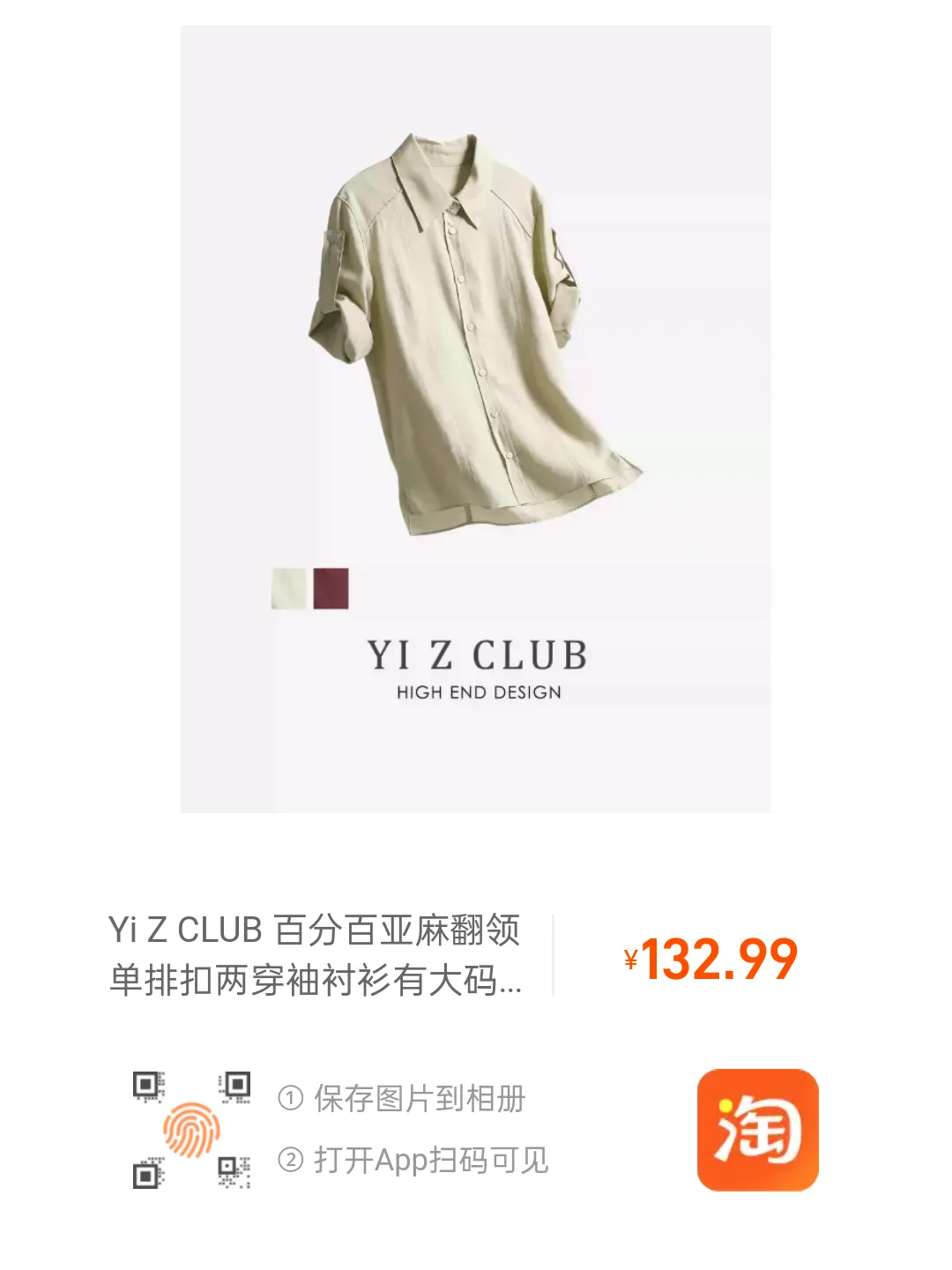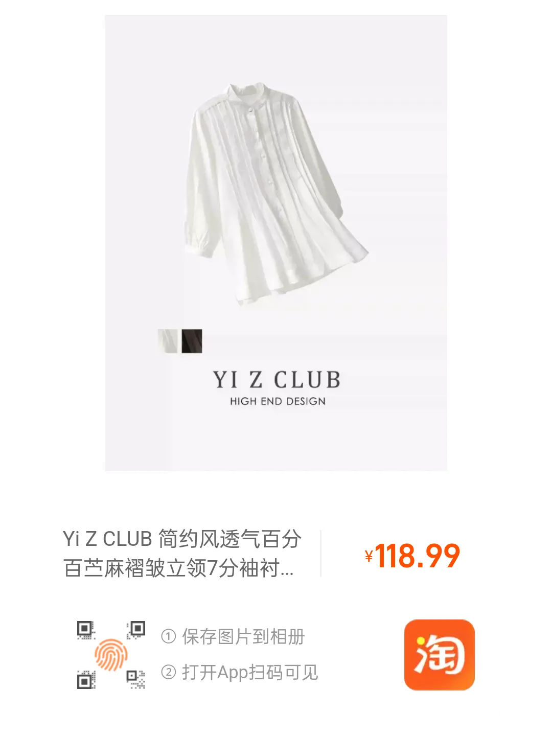 或将图片保存至相册、用手淘APP扫一扫浏览