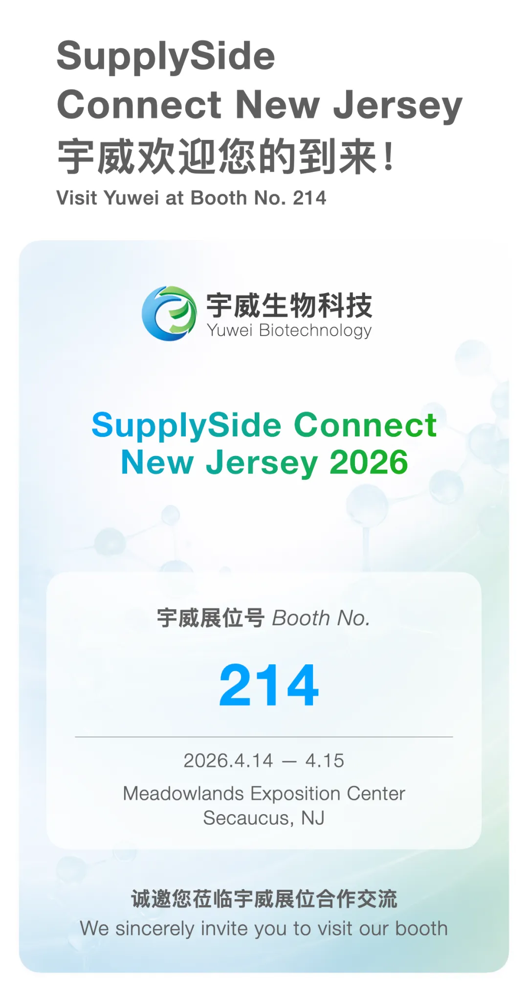 展会|宇威邀您共赴美东健康原料展(新泽西)
