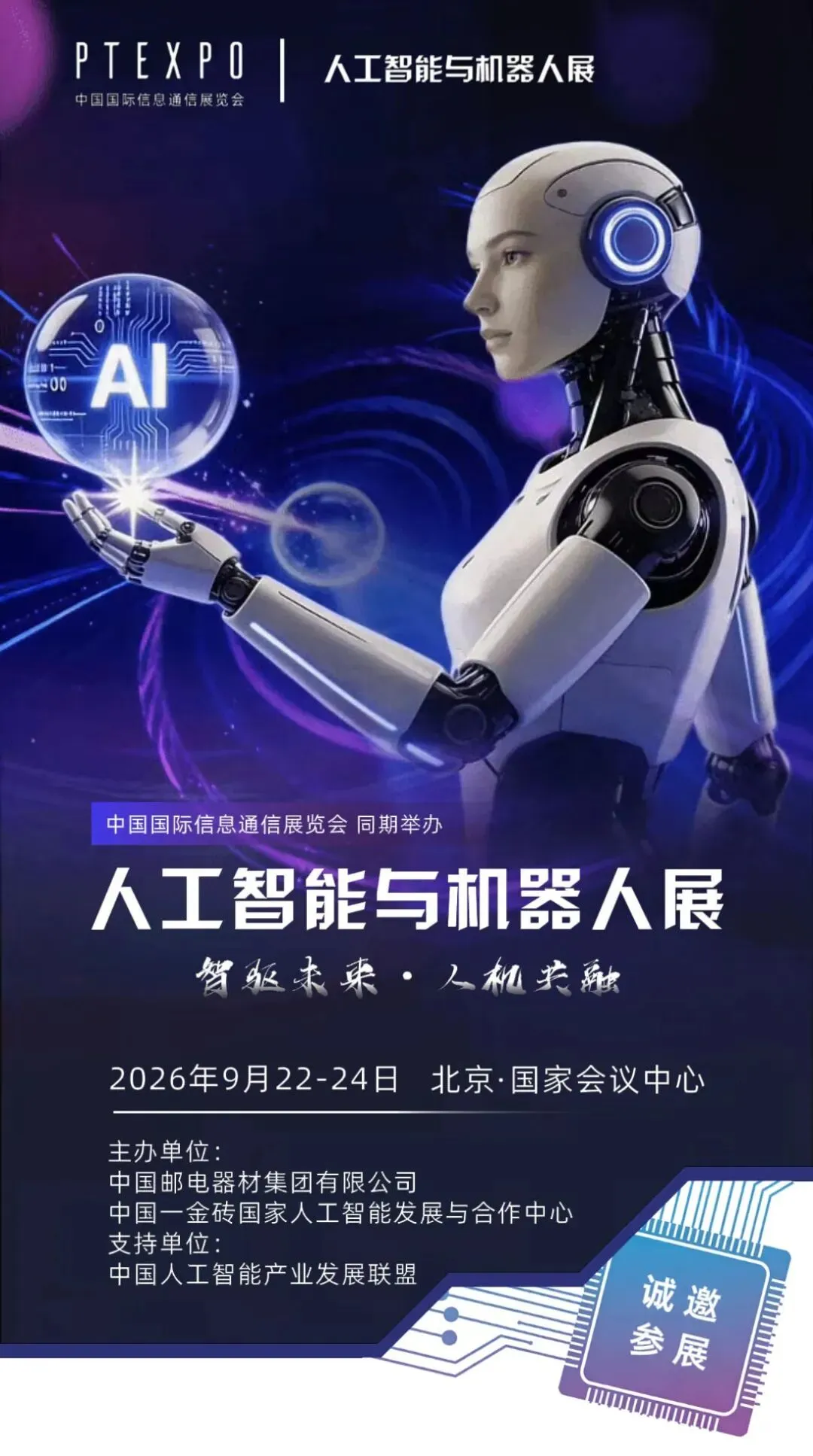现诚挚邀请贵单位参与人工智能与机器人专项展览展示、论坛及相关活动,共同探索智能时代的无限可能。