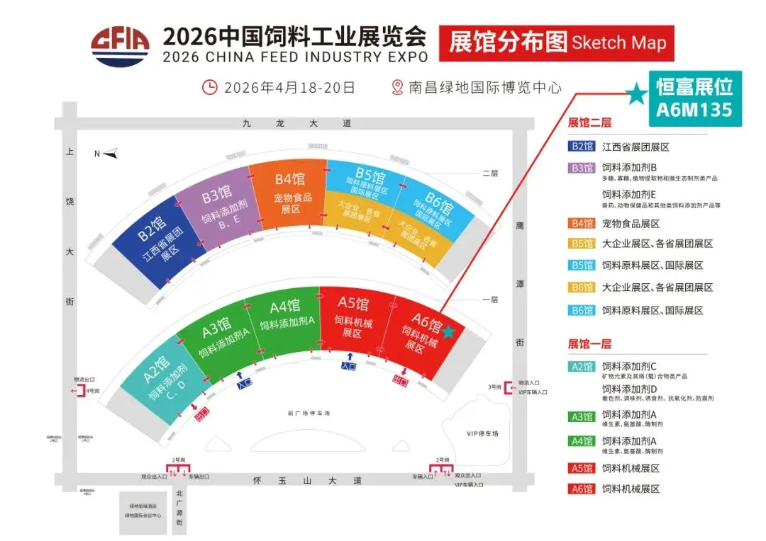 2026 中国饲料工业展览会将于4月18日 - 20日在江西南昌绿地国际博览中心隆重举办。