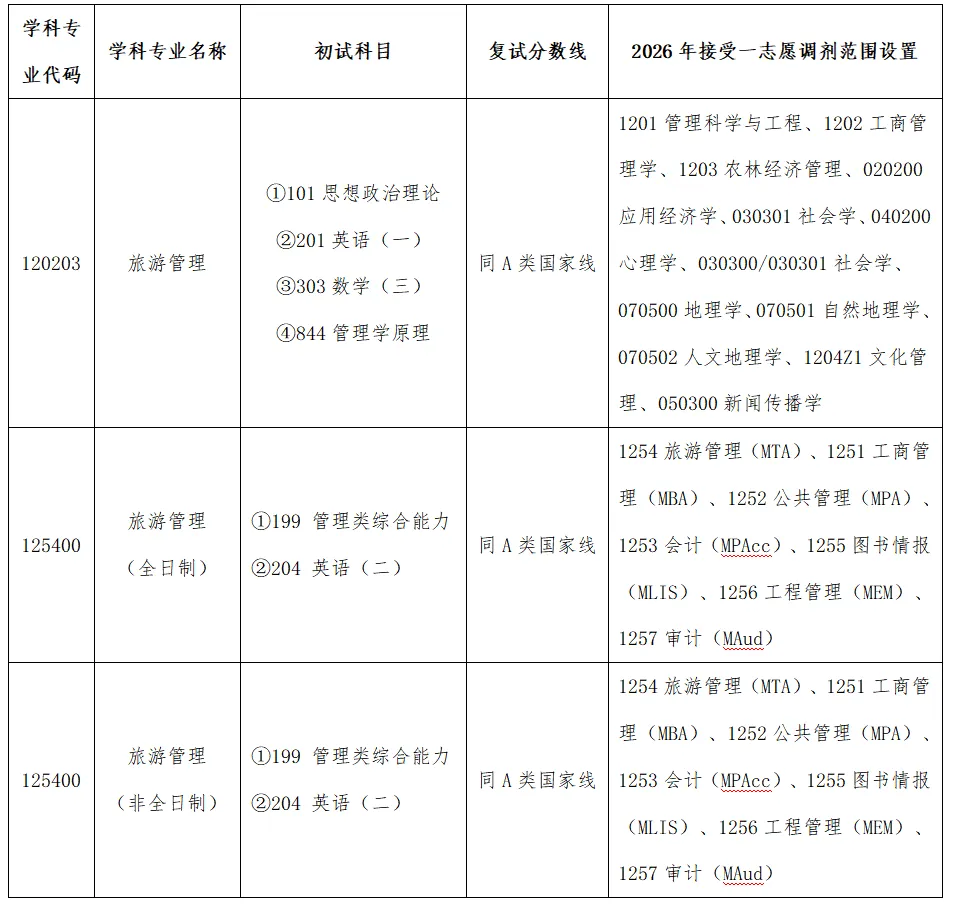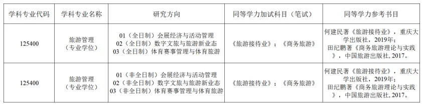 2.旅游管理专硕(125400)(全日制/非全日制)。