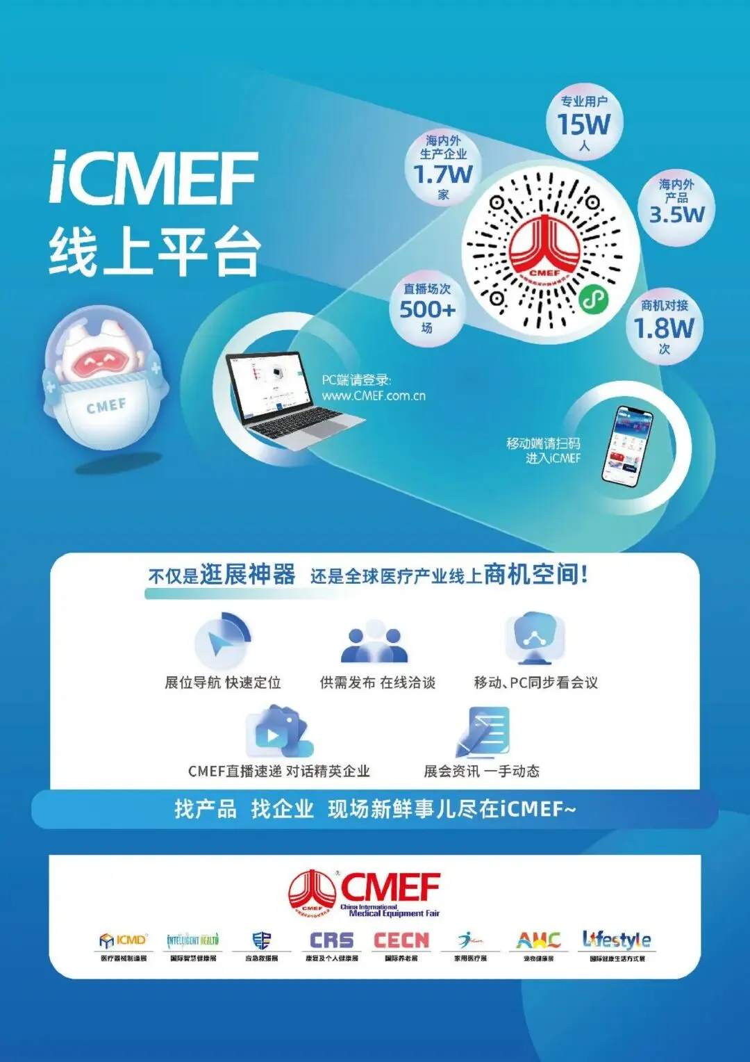 展览内容将覆盖上游原材料、核心零部件、设计制造、技术解决方案,中游医学影像、体外诊断、手术室、医用电子、智慧医疗、康复养老等核心领域,以及下游医疗服务、渠道流通与健康管理等多个环节。