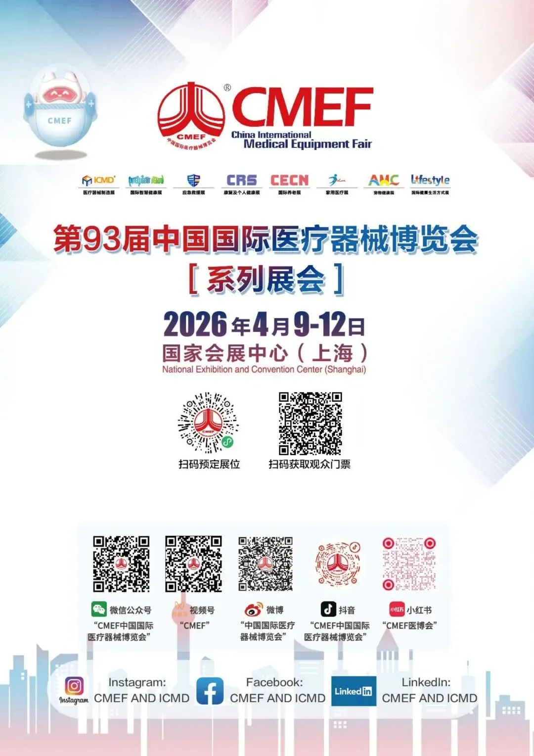 2026年4月9日至12日,第93届中国国际医疗器械博览会(CMEF)系列展将在国家会展中心(上海)隆重举办。