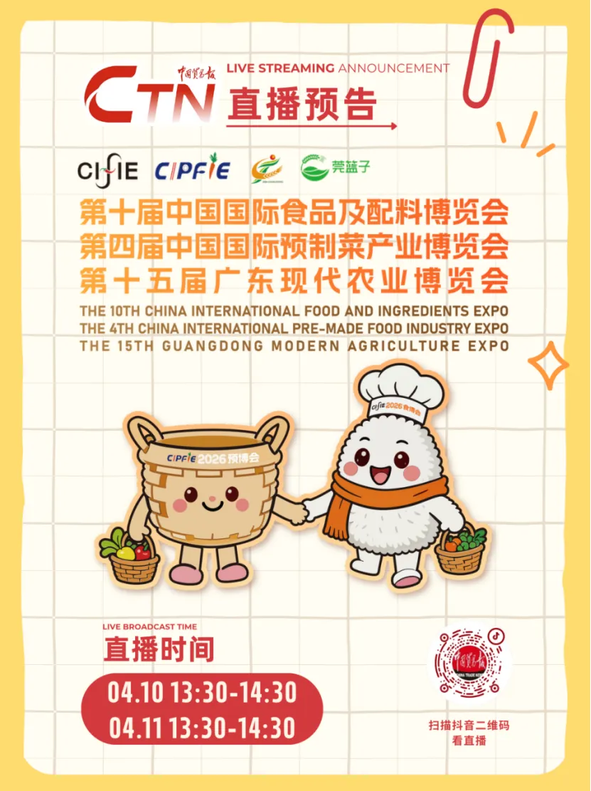 第十届中国国际食品及配料博览会第四届中国国际预制菜产业博览会第十五届广东现代农业博览会由农业农村部农业贸易促进中心(中国贸促会农业行业分会)、广东省农业对外经济与农民合作促进中心(广东省农业展览馆)主办。