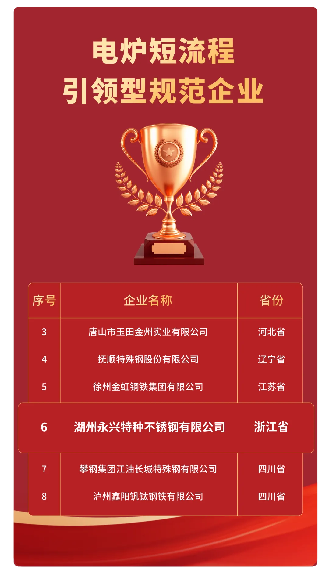 近日,国家工业和信息化部正式发布中华人民共和国工业和信息化部公告2026年第7号,对符合《钢铁行业规范条件(2025年版)》的企业(第一批)名单予以公告。在全国34家获评的“引领型规范企业”中,湖州永兴特种不锈钢有限公司(以下简称“永兴特钢”) 成功入选,并成为浙江省唯一入选的电炉短流程引领型规范企业。