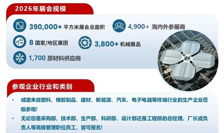 为助力企业把握橡塑行业发展机遇、拓展交流合作渠道,进一步加强企业交流与供需对接,第三十八届中国国际塑料橡胶工业展览会现已开启报名,请有需要观展的企业务必在4月20日下午15:00前完成报名,可享受相关专属福利。