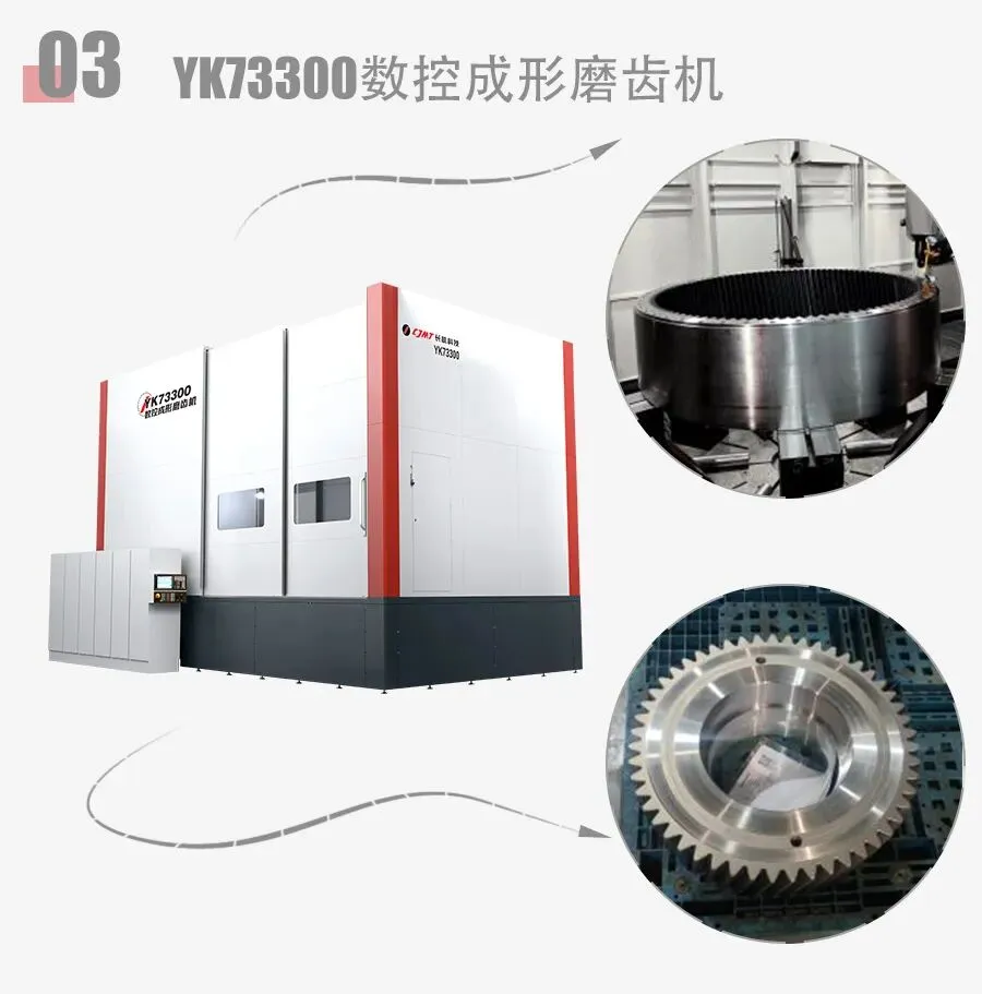 主要应用于风电、回转支撑、矿山机械等行业大型内外齿轮高精高效磨削加工。
