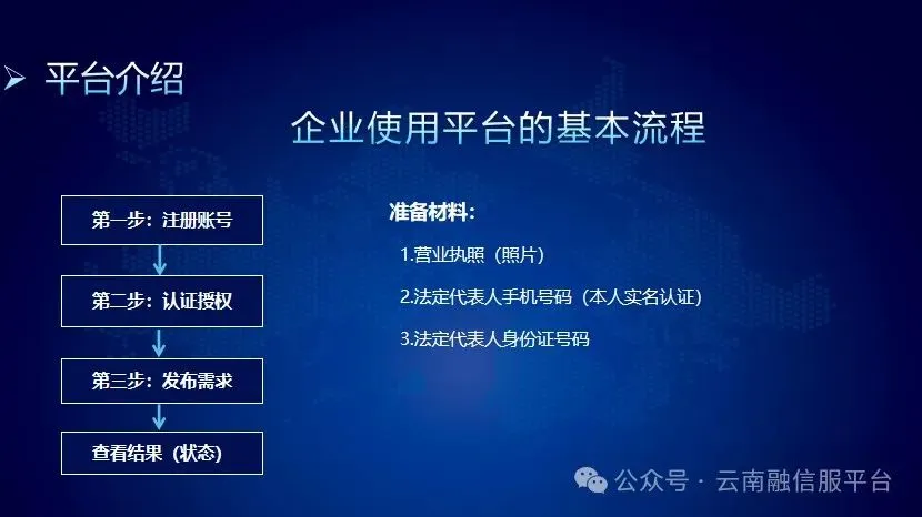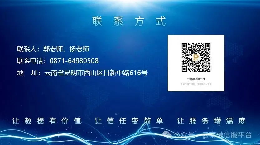 云南省融资信用服务平台(简称“融信服”平台)由省发展改革委(省数据局)、中国人民银行云南省分行、国家金融监督管理总局云南监管局牵头建设,是云南省重要的金融基础设施和普惠性金融数字赋能平台,具备数字信用、贷款撮合、政策直达三大功能。