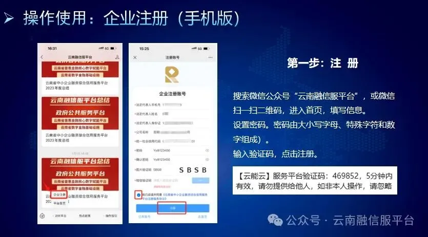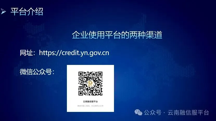 二是手机微信公众号。搜索“云南融信服平台”或扫描二维码。