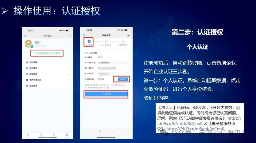 第二步认证授权:进入首页,右上角账号下拉键,点击切换企业添加企业。开始个人认证,企业认证,签署授权书。