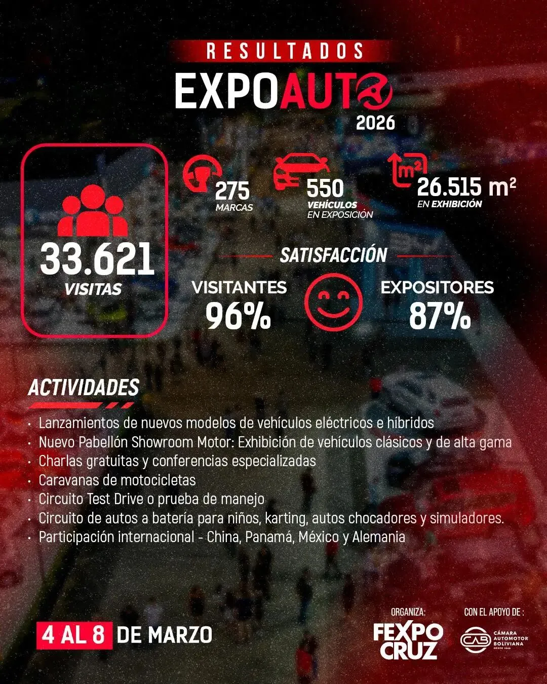 玻利维亚国际汽车、摩托车配件展是玻利维亚国内最具盛名的专业性汽摩配展会,已成功举办十六届,得到当地汽车、摩托车协会及商会等众多机构的大力支持。展会每年在玻利维亚最大城市圣克鲁斯举办,为不同专业群体和参展商提供了便捷、有针对性的交流平台。2026年3月,第十六届展会圆满落幕。五天展期共迎来来自中国、巴拿马、墨西哥、德国、玻利维亚、厄瓜多尔、哥伦比亚、秘鲁、阿根廷、委内瑞拉等国的众多代表团,包括中国汽车品牌BYD、SACI、FOTON,以及知名摩托车品牌Bajaj、Yamaha、春风、KAWASAKI、BENELLI等近300家参展商,展出550种车型,吸引了33,000余名市民、专业参观者及买家。当地著名摩托车经销商如VISAL、IMCRUZ、KAWAMOTO、SAAVEDRA、TOYOSA、KATSAL等均亮相展会,为中国企业开拓玻利维亚市场提供了绝佳平台。该展旨在拉近南美洲及海外国家汽车、摩托车、自行车生产商与供应商之间的关系,促进南美经济增长,加深贸易合作。展会上将集中呈现摩托车、汽车和自行车行业最新的产品、设计、装备、服务及潮流趋势。✅ 南美重要市场——玻利维亚地处南美洲中心,与巴西、秘鲁、智利、阿根廷、巴拉圭五国接壤,辐射效应显著✅ 展会规模大——26,000+平方米展出面积,33,000+专业观众,近300家展商✅ 国际参与度高——汇聚中国、拉美及欧美多国品牌,买家资源丰富✅ 摩托车需求旺盛——当地摩托车为主要交通工具,配件市场潜力巨大✅ 政策利好——玻利维亚对中国普通护照实施落地签政策(建议提前办理,避免长时间排队)作为中轻展览在南美市场重点开拓的展会项目,我们深知这片热土蕴藏的无限机遇。圣克鲁斯是玻利维亚的经济引擎,汽摩配市场正处于快速增长期。我们诚邀您一同踏上这片充满潜力的市场,与我们一起,在新天地开创新篇章。当前展会报名已正式启动,席位有限,先到先得。有意向的企业请尽早决策,把握通往南美市场的黄金通道。玻利维亚对中国普通护照实施落地签政策,可在玻驻外领事机构申请,也可在机场或陆路口岸边检部门申办落地签。但由于落地签等待时间较长(通常需3小时左右),建议您提前在国内申请玻利维亚商务签或旅游签,以免影响行程。Sinolight International Holdings Corporation张丽丽:010-64778613;18519775906(微信同号)张晨晨:010-64778696;17611373027(微信同号)刘 玥:010-64778565;15313372919(微信同号)zhangchenchen@sinolight.cn地址:北京市朝阳区望京启阳路4号中轻大厦2131室(100102)