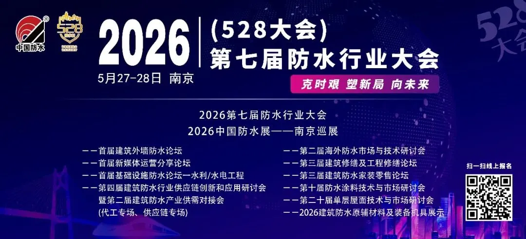 2026中国防水展将继续从全产业链、建筑修缮、助力好房子建设、国际视野四大板块出发,设置 “全体系覆盖、全系统整合、全球化视野,助力全赛道布局、全维度转型”“修缮护航 共筑宜居美好未来”“好防水・好房子 全链赋能筑未来”“解锁全球建筑防水视野 立体对接国际前沿”四大主题,为专业观众呈现了一场 “一站式解决需求” 的专业展会。从上海到北京,从长江经济带到京津冀协同发展示范区,中国防水展历经二十余载深耕,不仅实现了展会规模、品质与国际影响力的持续跃升,更见证了中国建筑防水行业从材料驱动向系统驱动、从新建为主向新建与修缮并重、从国内市场向全球市场跨越的重要历程。
