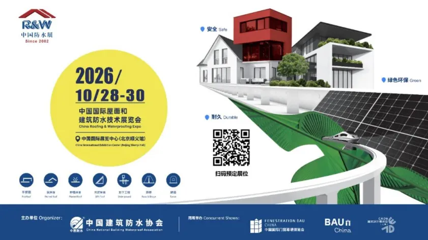 从上海到北京,中国防水展始终以行业责任为己任,持续推动屋面与建筑防水技术创新与产业升级。2026年10月28-30日,中国国际展览中心(北京顺义馆)E3、E4馆,诚邀国内外防水行业同仁、产业链伙伴、专业观众齐聚一堂,共赴这场技术与贸易的盛宴,共绘行业高质量发展新蓝图!