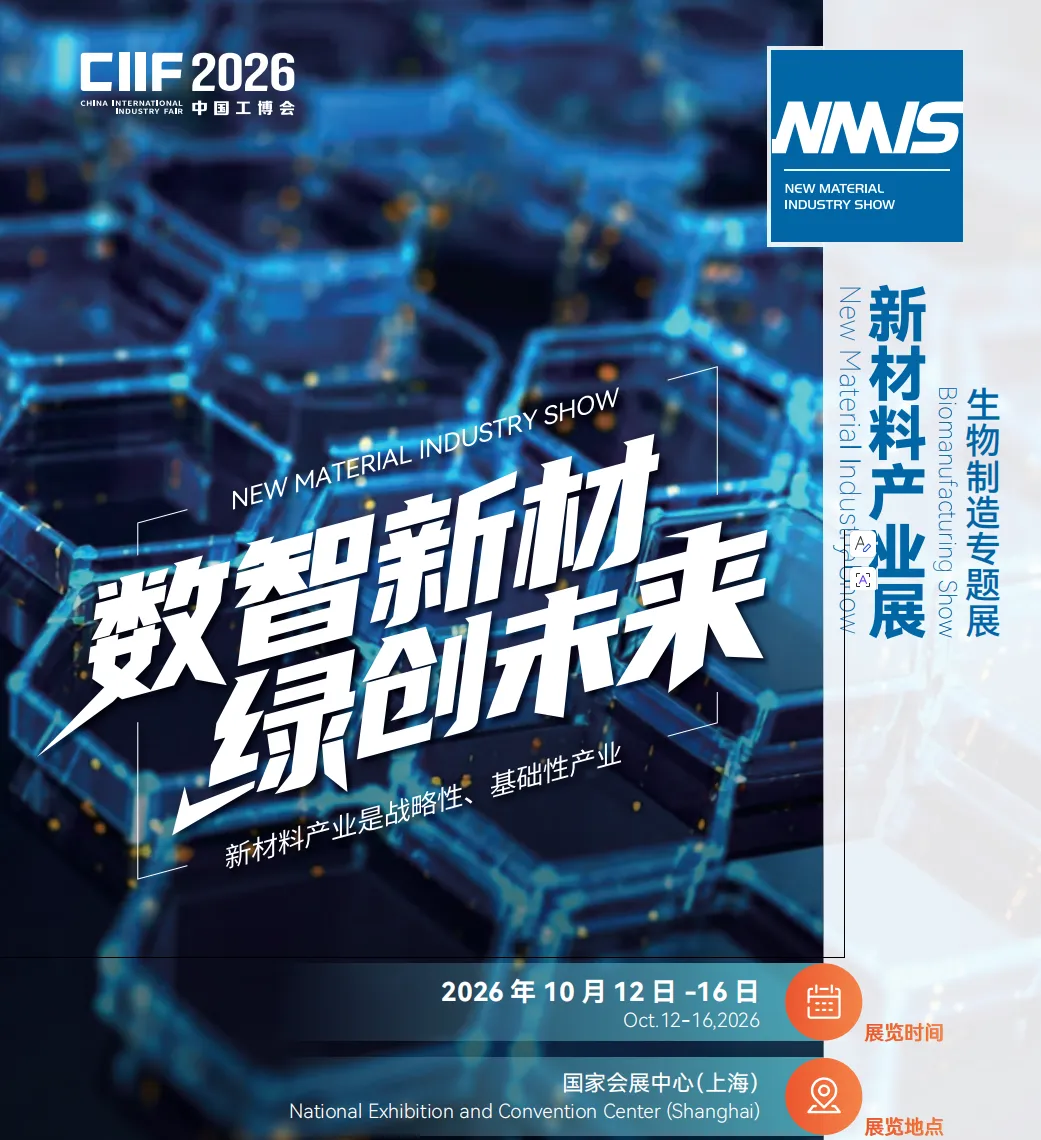 第二十六届中国国际工业博览会(CIIF)——新材料产业展,将于2026 年 10 月 12-16 日,在国家会展中心(上海) 盛大启幕!