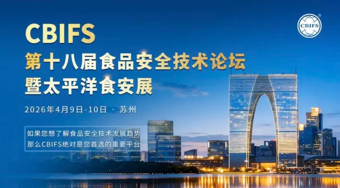 2026年4月9日-10日,CBIFS第十八届食品安全技术论坛将在苏州国际会议酒店隆重召开。