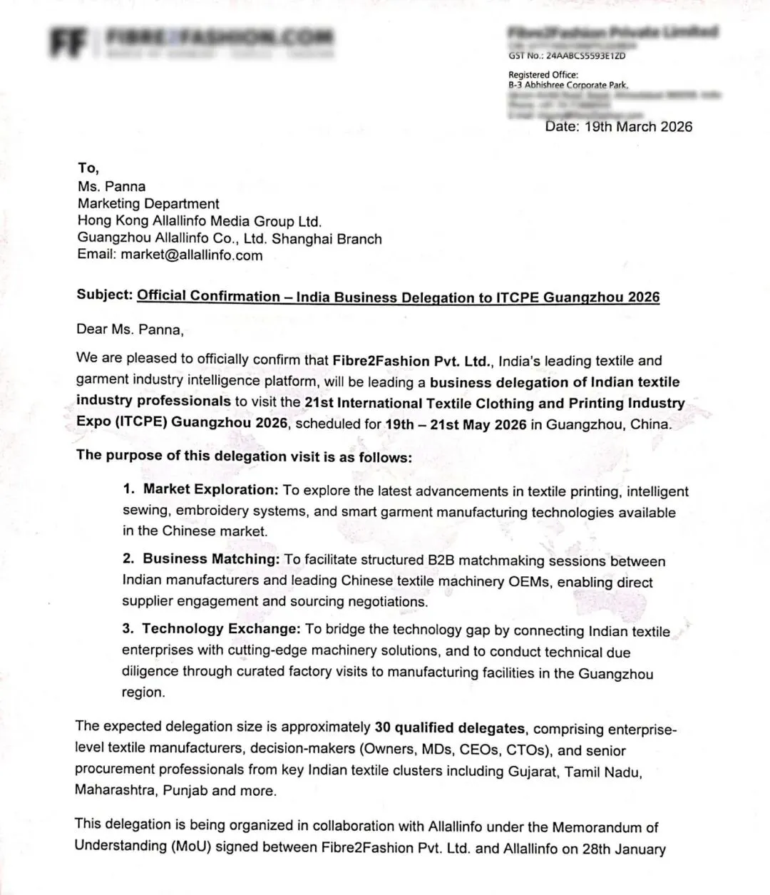 印度行业机构F2F确认将组织采购代表团强势入驻,成员涵盖印度主要纺织集群的头部企业采购总监、技术工程师及品牌商代表。