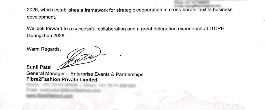 胡志明市纺织成衣刺绣及针织协会(AGTEK)已正式确认接受邀请,将组织协会企业成员赴广州参与2026 ITCPE纺博会。根据致谢函内容,该协会高度认可展会对于越南纺织制衣企业的战略价值,明确表示亟需通过展会获取国际先进的纺织制衣、印花、印染、缝制绣花技术与解决方案,以满足国际行业高标准要求。作为连续多届参会的“老朋友”,AGTEK此次参会必将进一步深化中越纺织制衣、印花、印染、缝制绣花产业在技术引进、品牌共建及市场开拓等领域的协同效应。