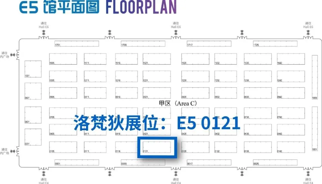 洛梵狄展位位置图:【E5 0121】